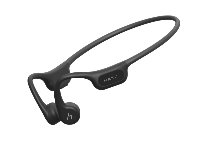 HAKII SURVIN is an ultra-light (21.5g) bone-conduction sports headphones built for land workouts and pool sessions.